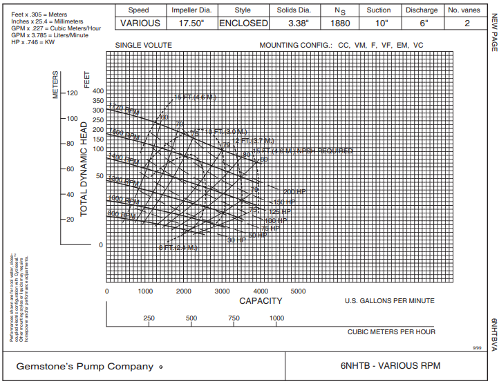 | Max Pressure | 270 PSI TDH/623 FT @ 200 GPM |