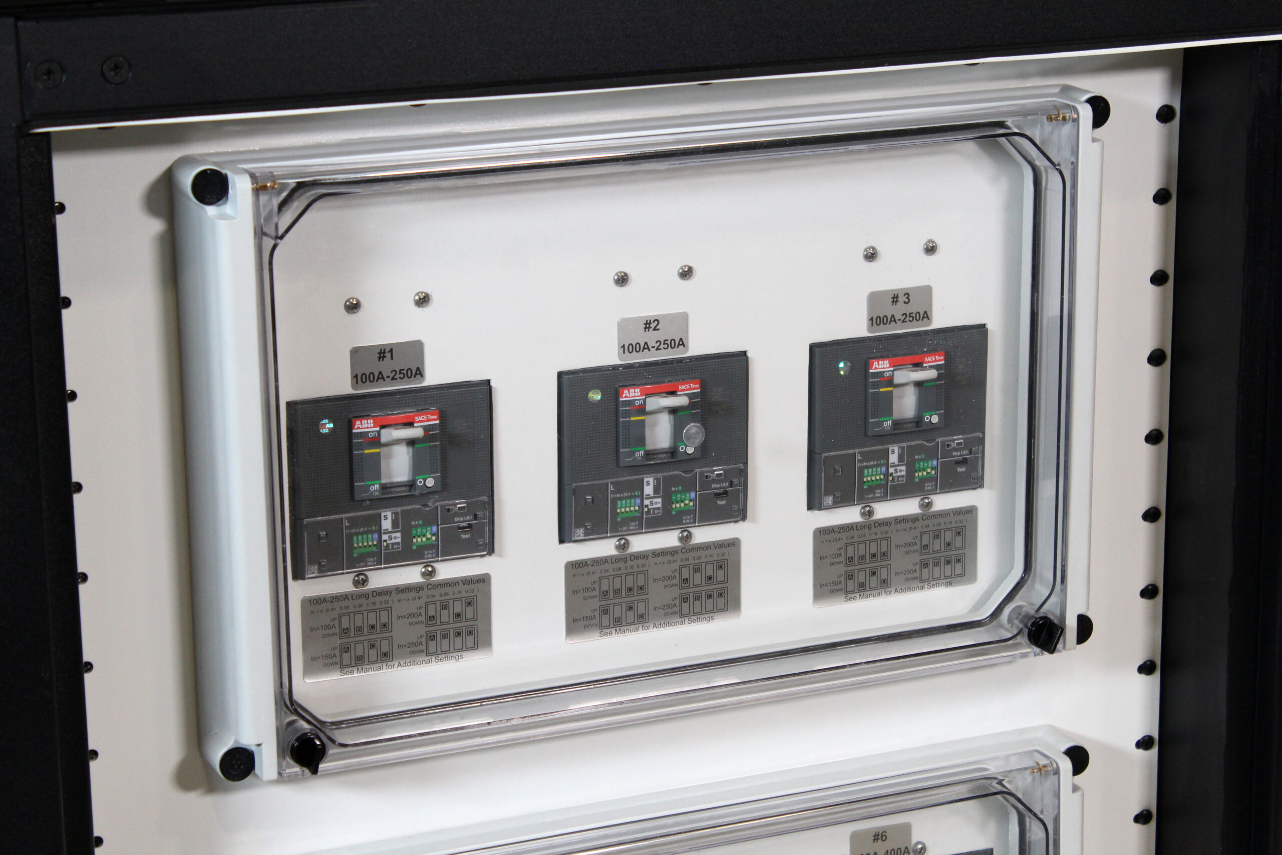 (2) 160-400 Amp, three-pole, electronic circuit breakers with adjustable settings |